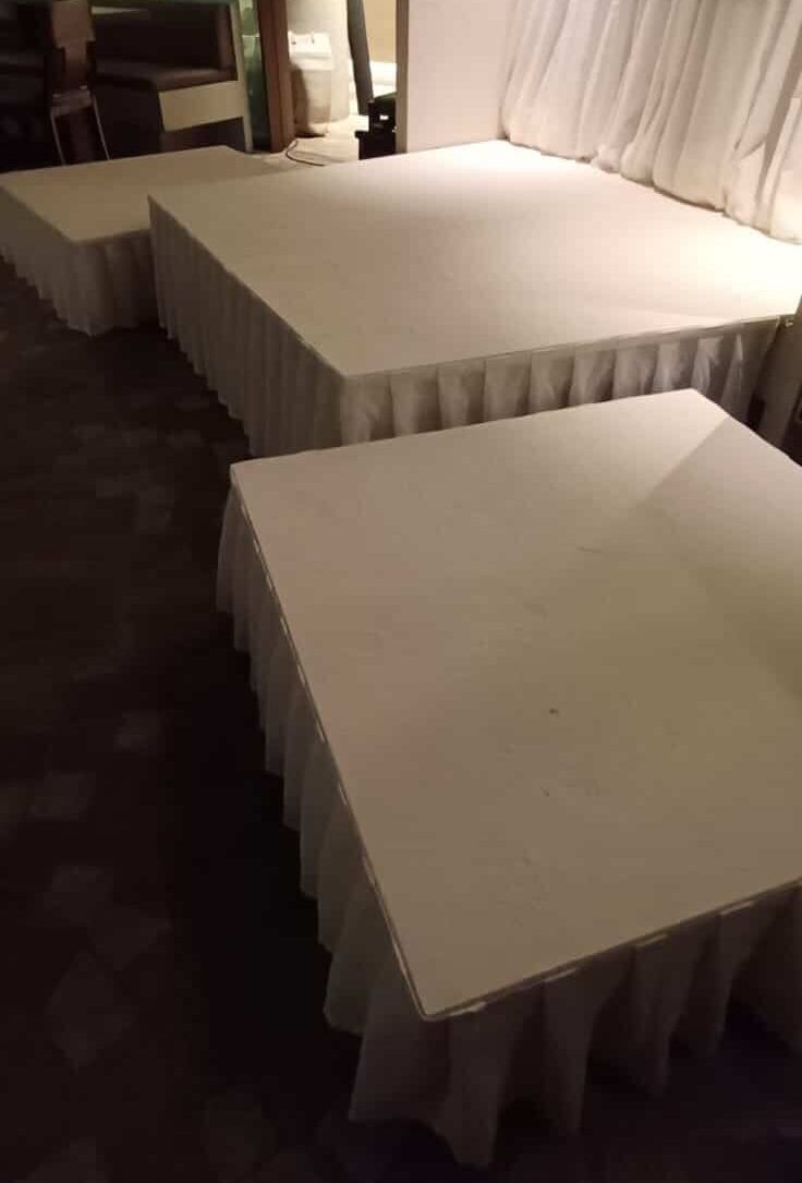For the hire of stage decks and skirts, get in touch with us. Testimonial “Most professional draping and staging company in Sydney, definitely a must for all your event needs.” Bruce Campbell